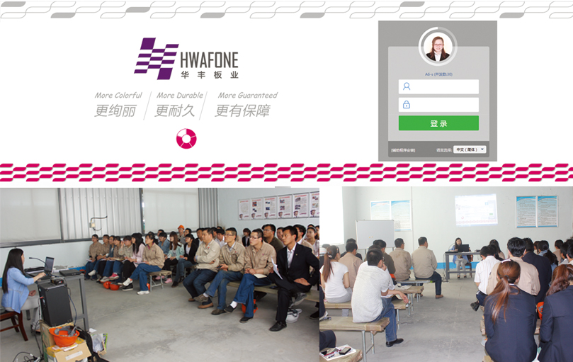2015年4月28日下午兩點,根據公司統一部署,華豐板業在車間安全培訓室召開了華豐板業OA項目應用培訓大會。出席會議人員有:總經理、生產副總、各部門主管及部門業務骨干、項目合作方公司的項目總監項老師和陳老師。
