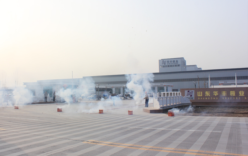 2015年2月24日年初六早上8點零6分山東華豐板業有限公司院內鞭炮響亮。這天萬里無云,陽光明媚,在這喜慶的日子里華豐板業年初正式開業。
